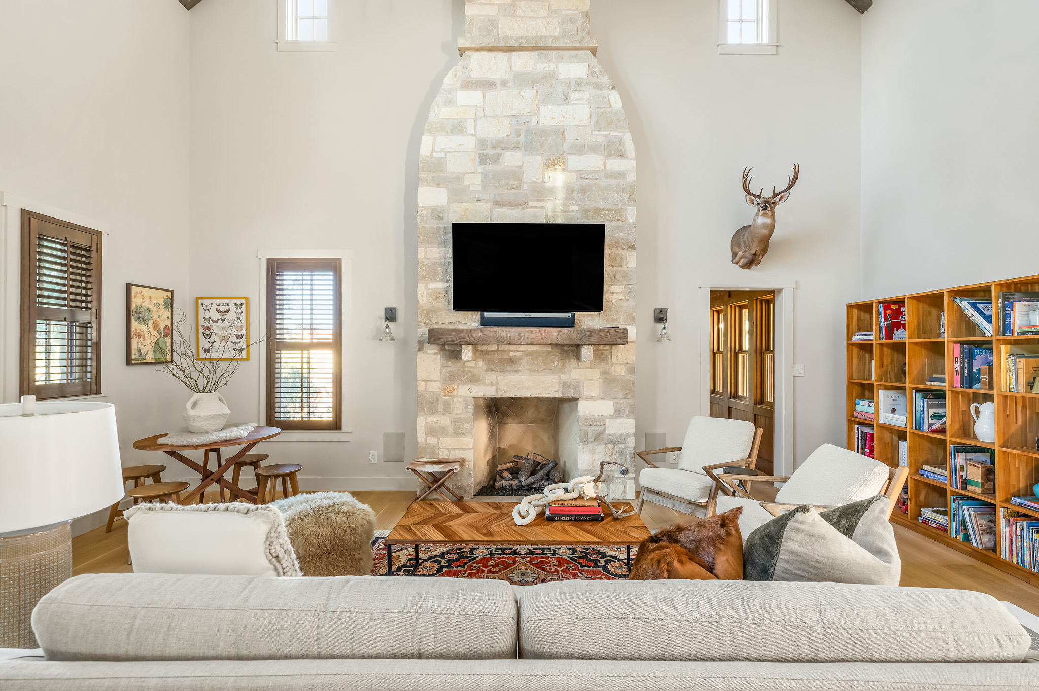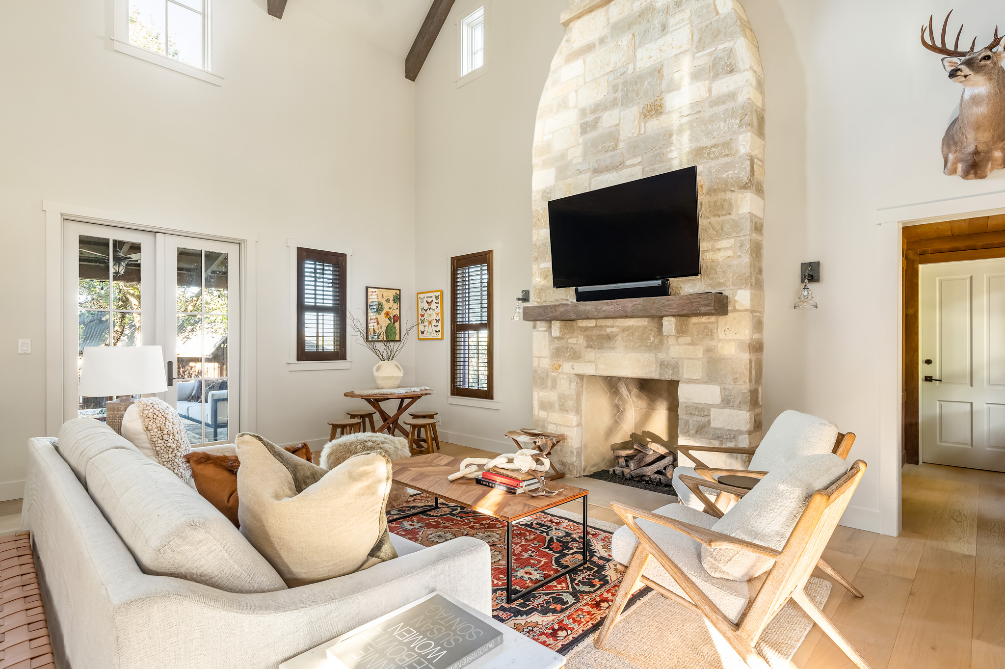Built by Deven Baughn of DBM Custom Homes in Fredericksburg, the residence reflects a commitment to enduring craftsmanship and architectural integrity, marrying authentic materials with refined simplicity.