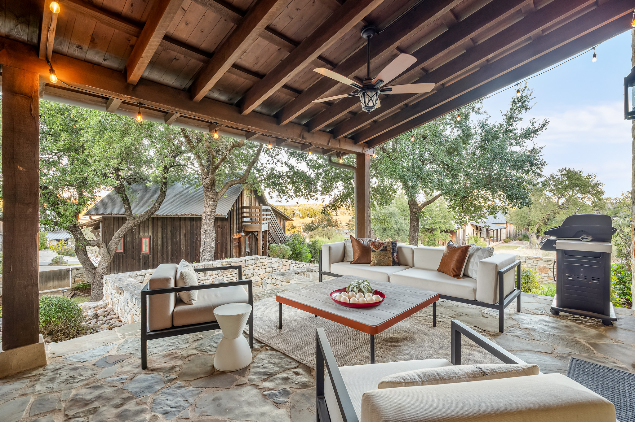 Historically inspired, 65 Riviera Cove- part of the Overlook Cabins at Boot Ranch- reflects the craftsmanship and character of 19th-century Hill Country residences.